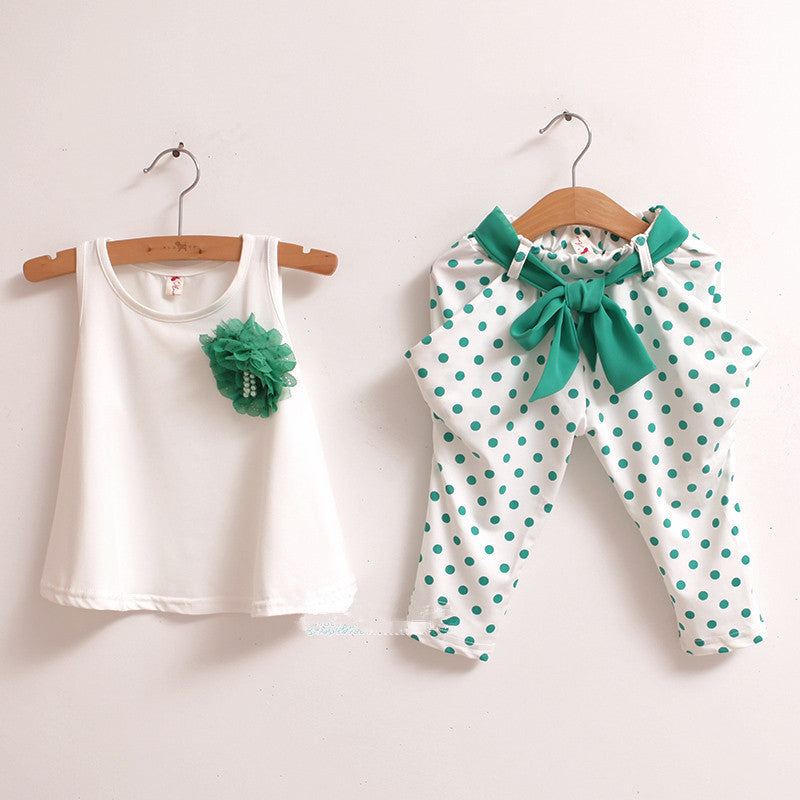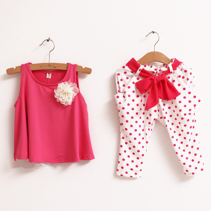 Retail NEW Kids Girls Sets Rose Flower Top Shirt + Bloomer Short Pants + Pearl Necklace Outfits