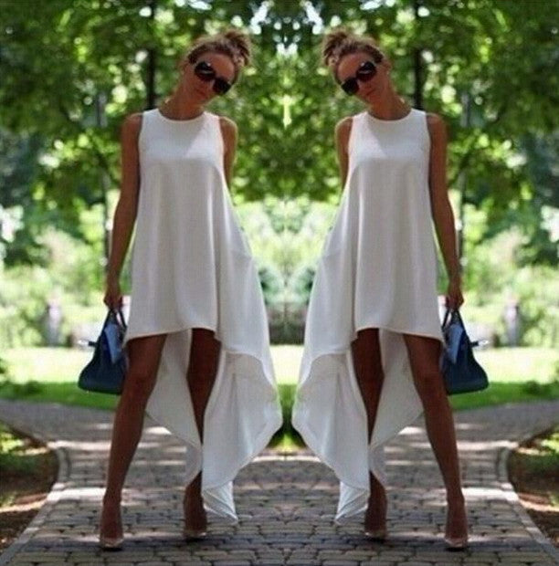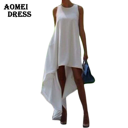 S M 3XL 5XL Women Summer Bohemian White Irregular Beach Dress Loose Flare Tunic