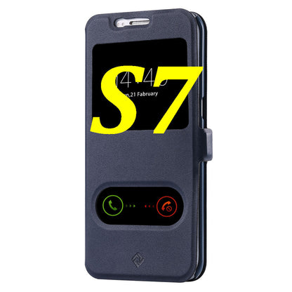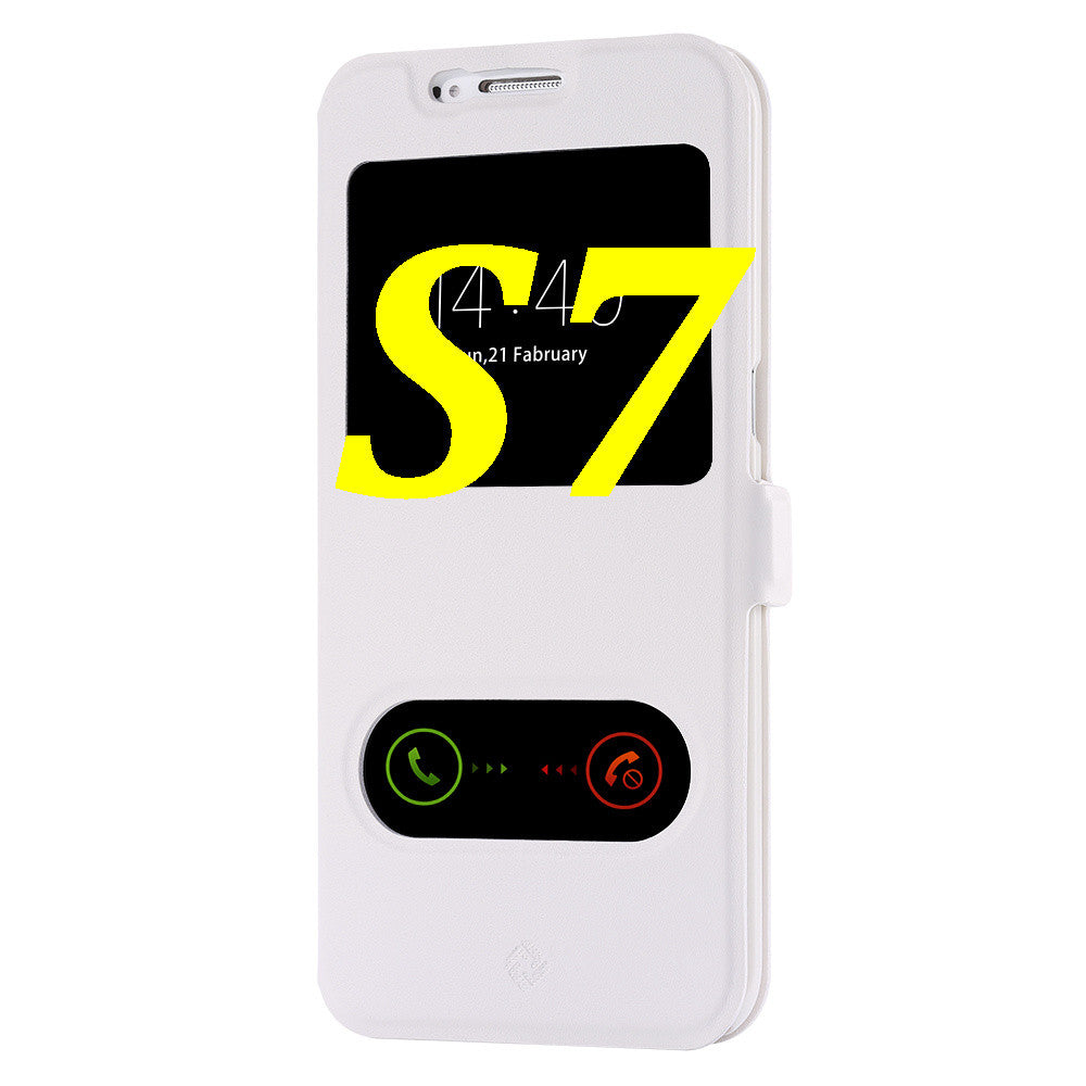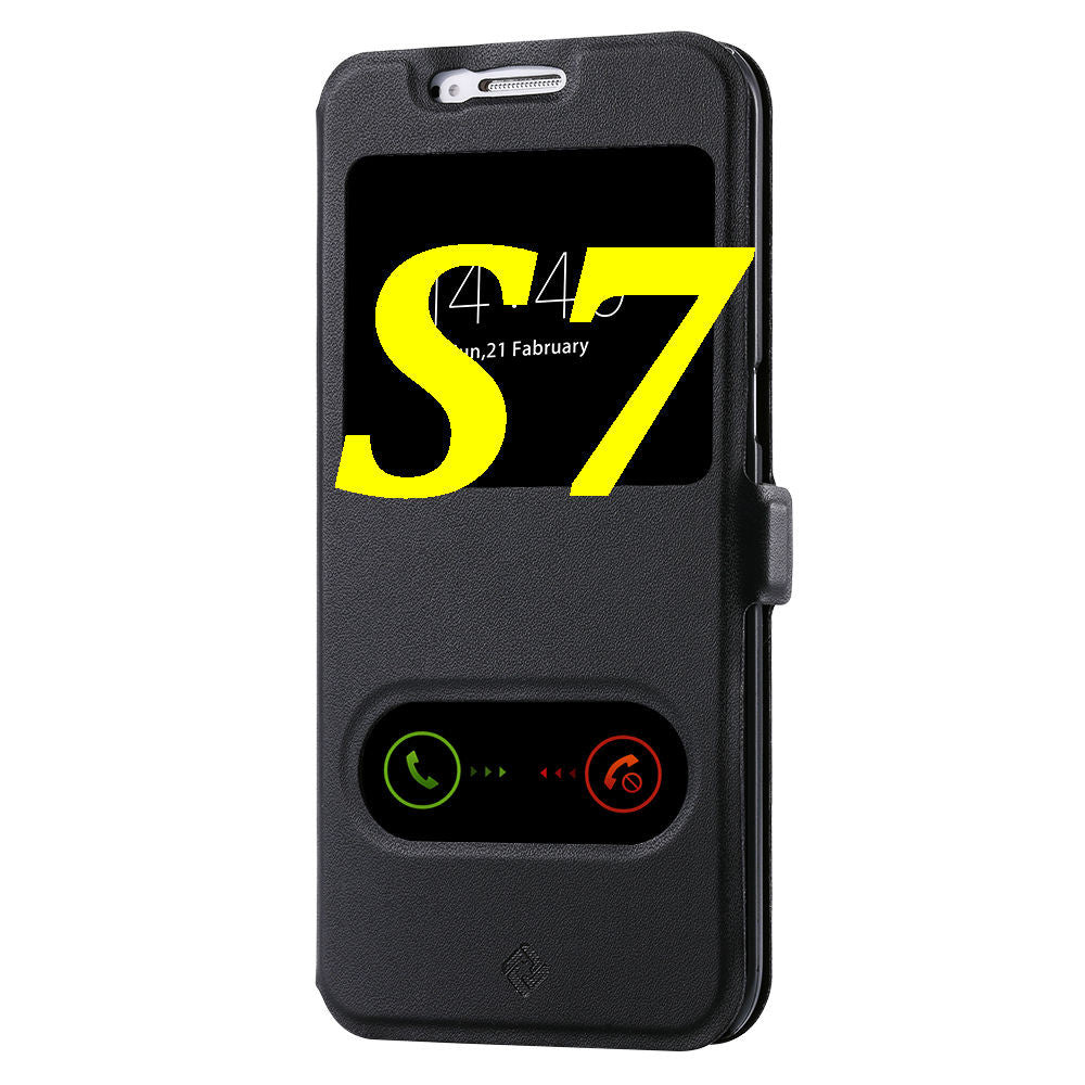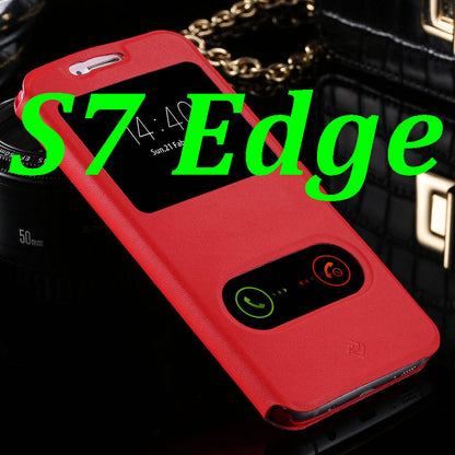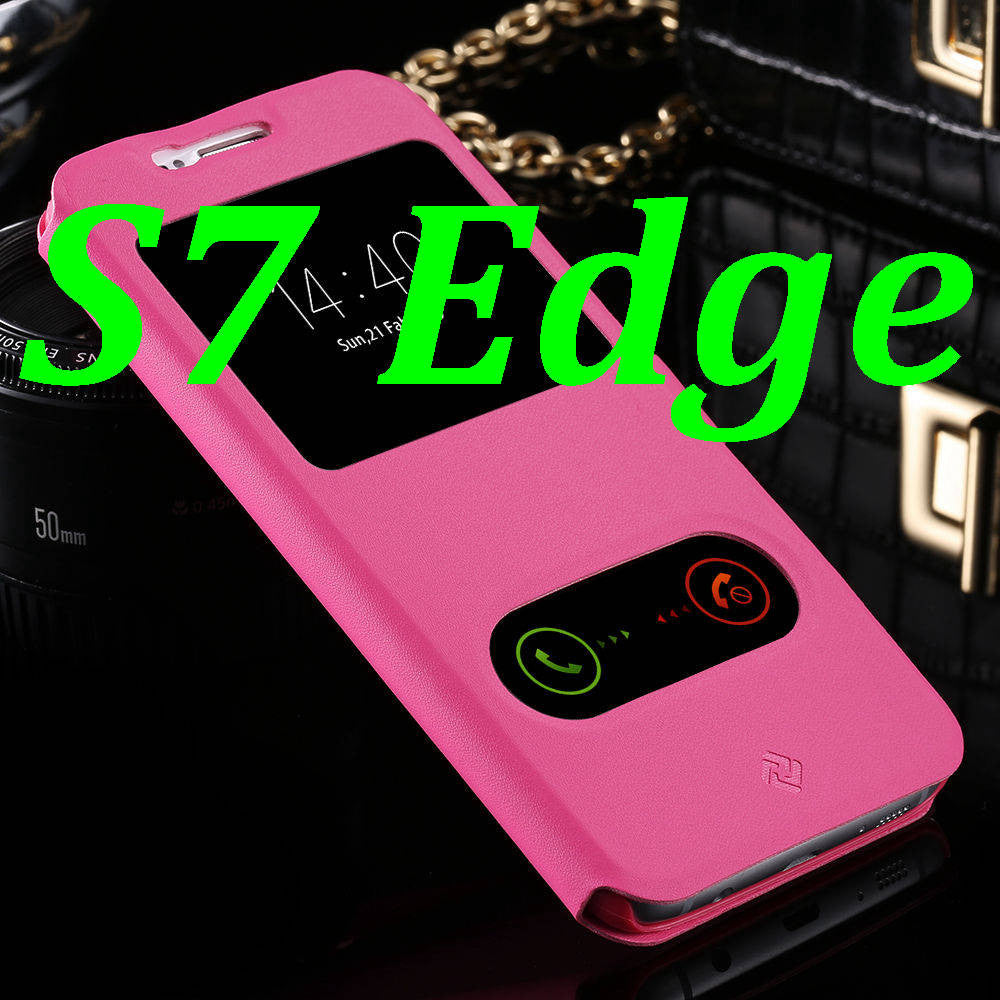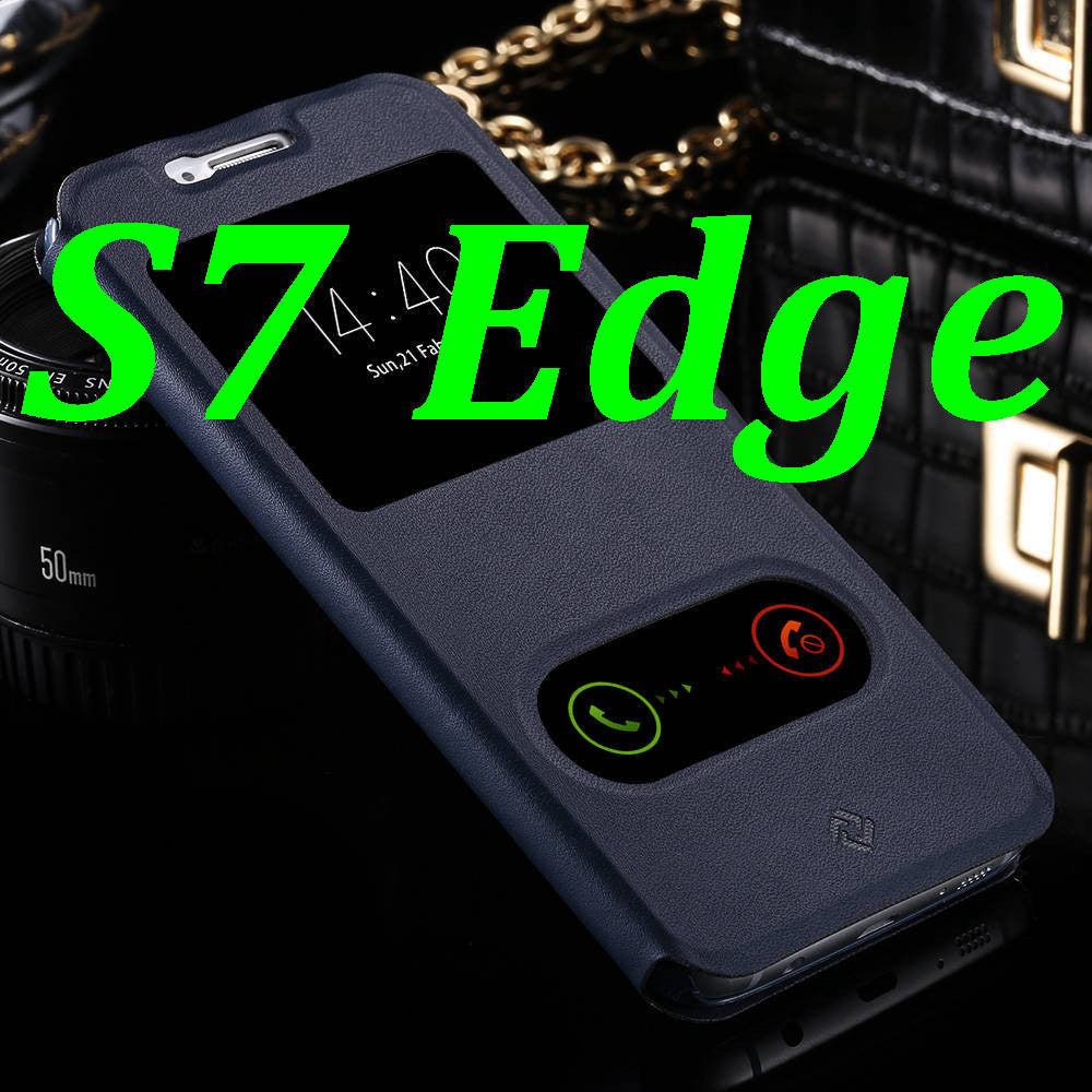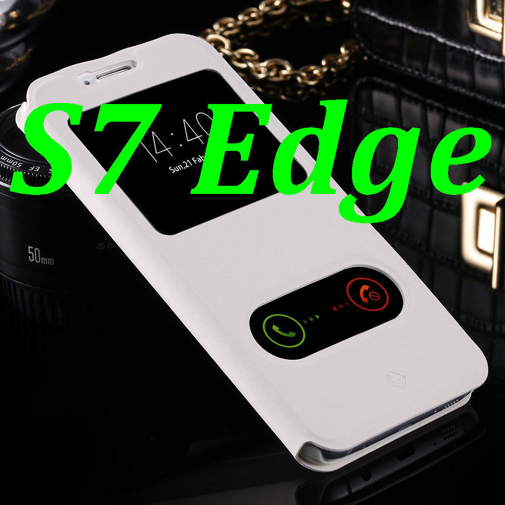 S7/S7 Edge Fashion Magnet Buckle Stand Flip Cover For Samsung Galaxy S7/S7 Edge Dual View Window Full Protect PU Leather Case