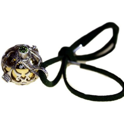 23mm Angel Bell Pendant, 925 silver, Angel: Healing, Name: Raphael, Bell: Brass, Detail: Peridot, Cord: Green