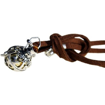 16mm Angel Bell Pendant, 925 silver, Angel: Protection, Name: Michael, Bell: Brass, Detail: Tigers Eye, Cord: Earth
