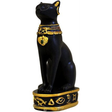 Small Bast Cat, H: 9.5 cm W: 3 cm D: 4.5 cm Made of resin.