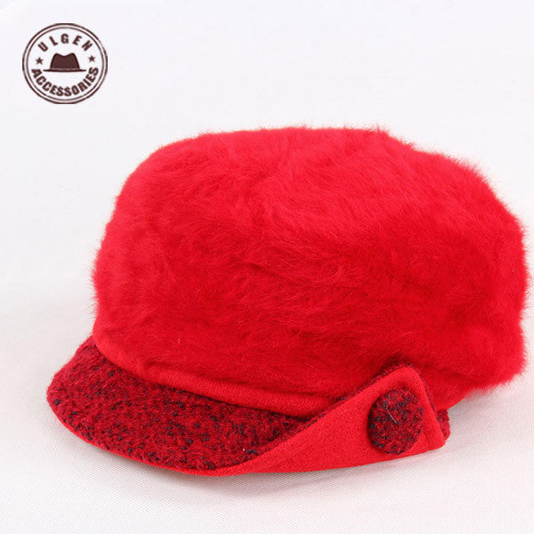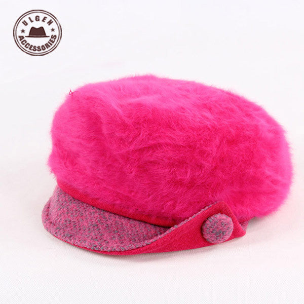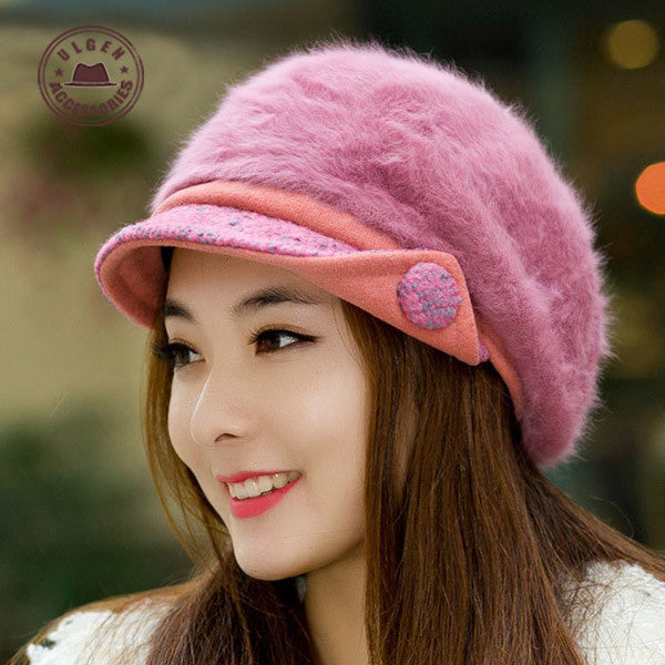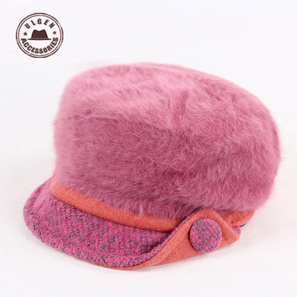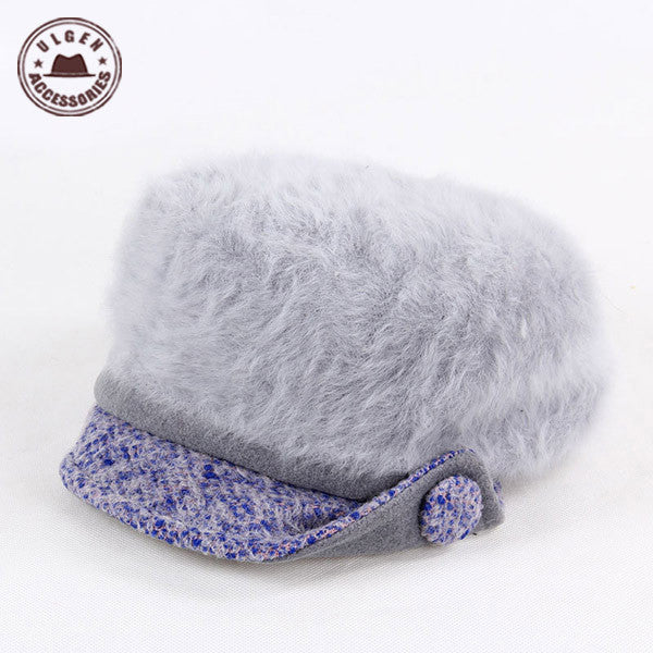 Snapback Caps Gorras Snapback Women Winter Warm Hat Thickening Double Rabbit Hair Button Earmuffs Knitted Visors Beret [gen-320]