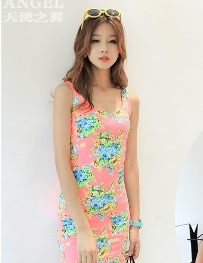 Summer Spring brand new designer sexy 2016 Sleeveless O-neck Floral Above-knee Length Short Bodycon