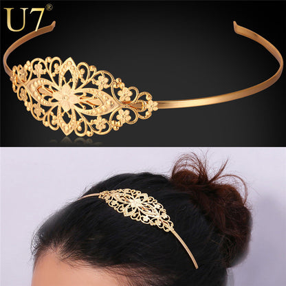 U7 Gold Flower Leaf Hairwear For Wedding 18K Gold /Platinum Plated Hair Jewelry Vintage Hair Band In