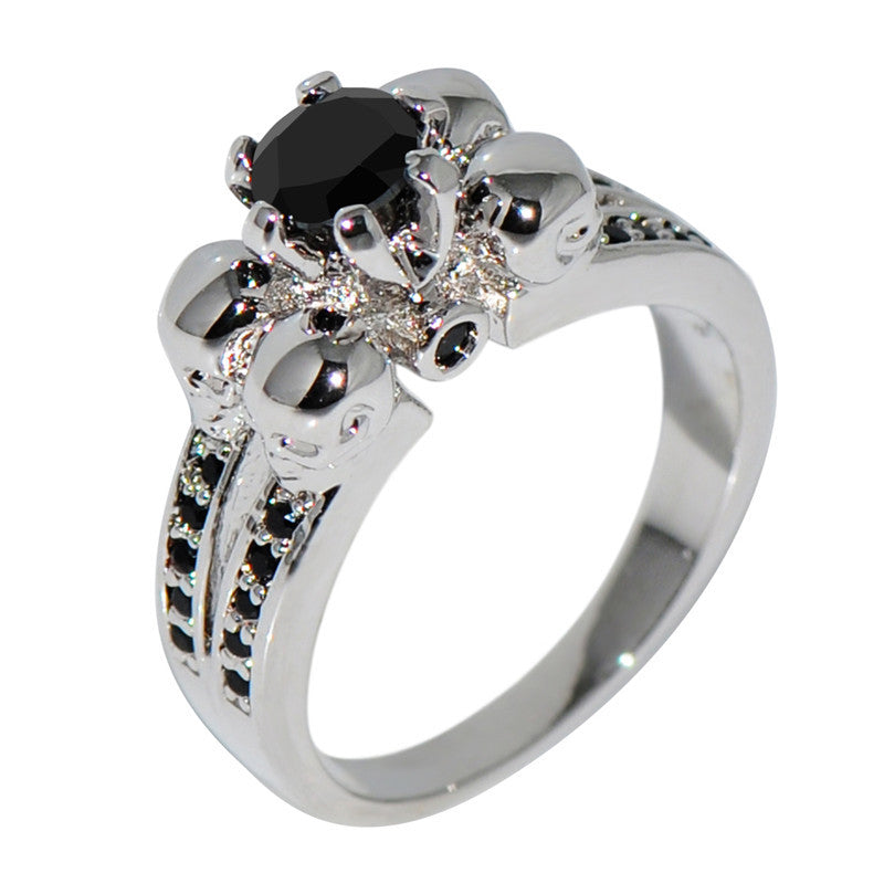 Vintage Black Sapphire Skull Jewelry Halloween Ring Anel Aneis Women/Men Engagement Band White Gold Filled Wedding Rings RW1129