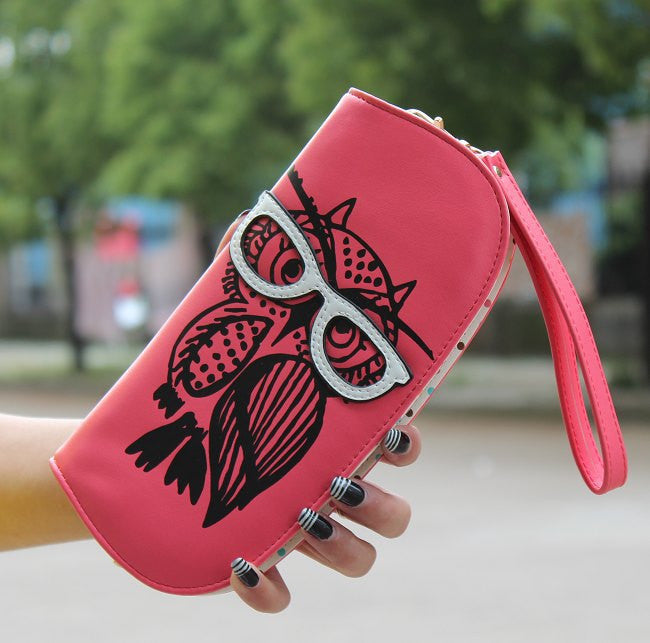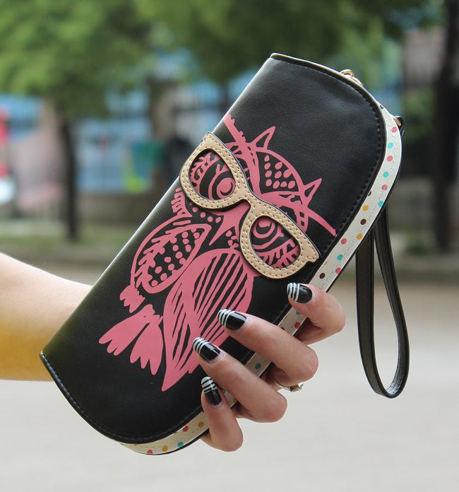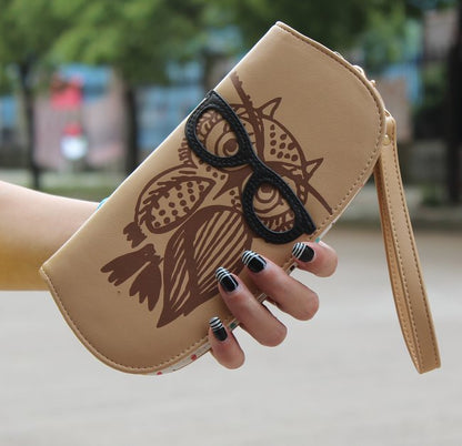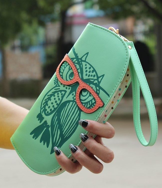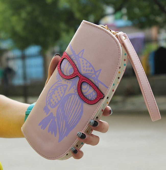Wallets Purse Cute Owl Glasses Hit Color Printing Korean Rounded Zipper Long Women