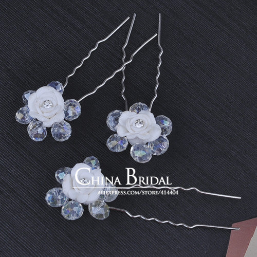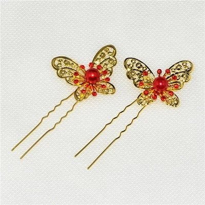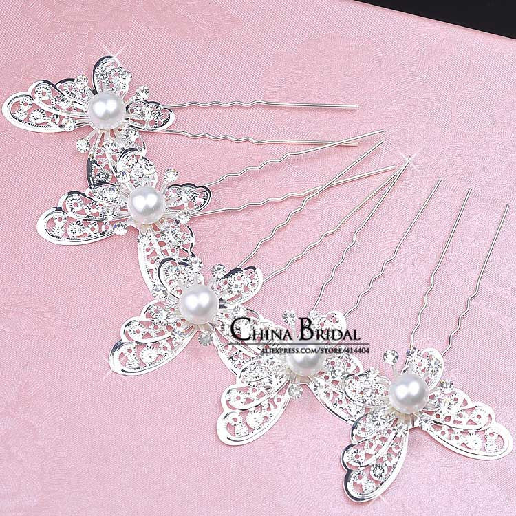 Wedding Hair Sticks 6PCS/Lot Rhinestone Handmade Butterfly Hairwear Wedding Hair