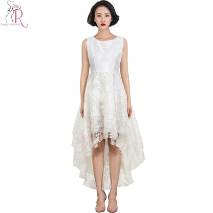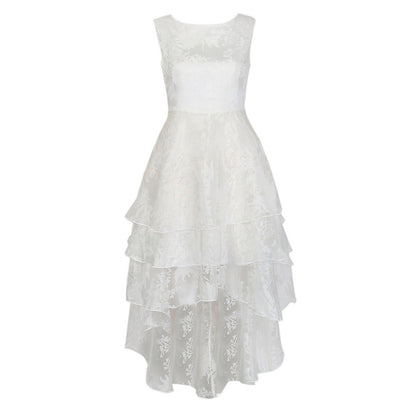 White Lace Floral Layered Sleeveless Round Neck Dress High Low Hem 2016 Women Spring Summer Novelty Designer Women ELegant Wear