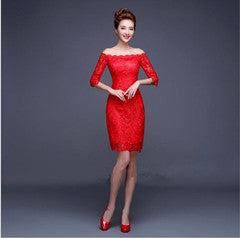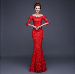 Women Floor Length Evening Party Lace Dress Half Sleeve Elegant Fishtail