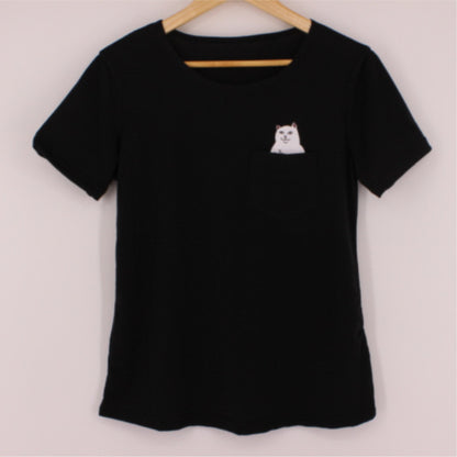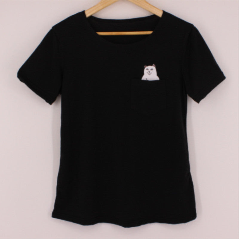 Women Print T-Shirt (+ Black Pocket Cat Harajuku)