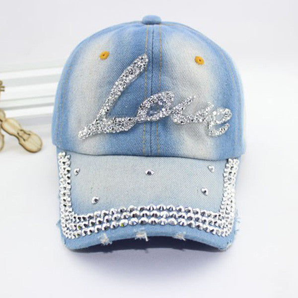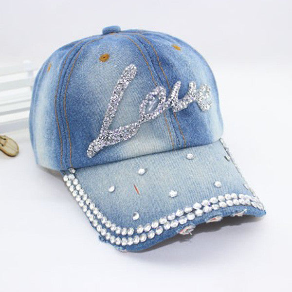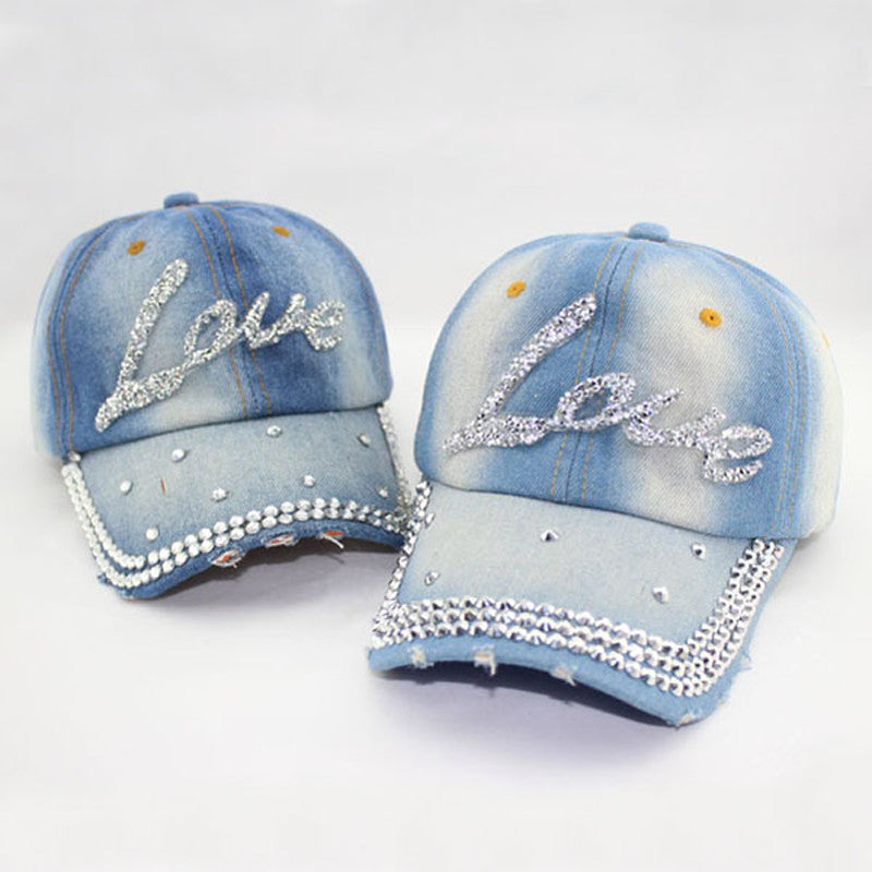 Women's fashion love letter rhinestone baseball cap Lady's casual denim hat