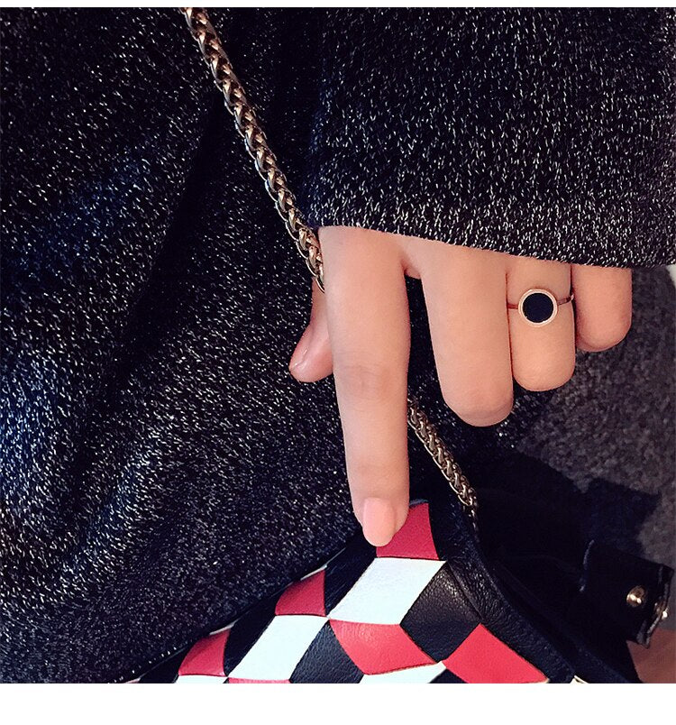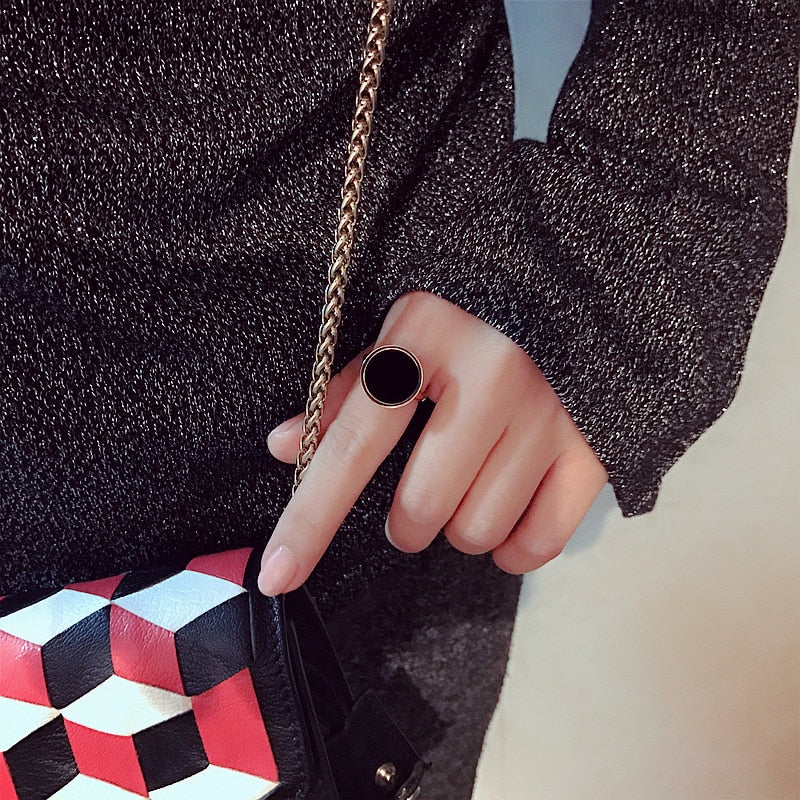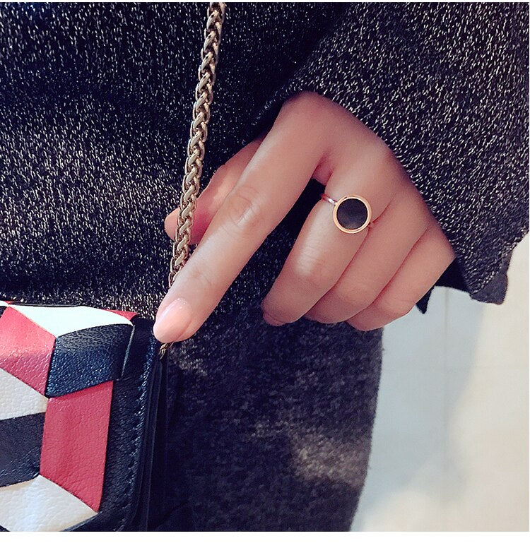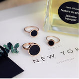 YUN RUO Fashion Classic Black Ring Titanium Steel Rose Gold Color Jewelry Wedding Ring Accessorie Woman Birthday Gift for Girl