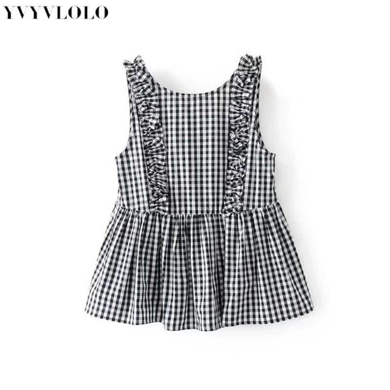 YVYVLOLO Summer Checked stripe Sleeveless blouse Blusas Women Fashion 2017