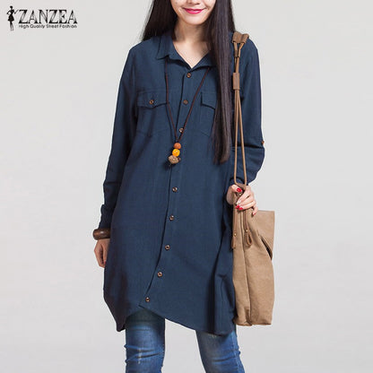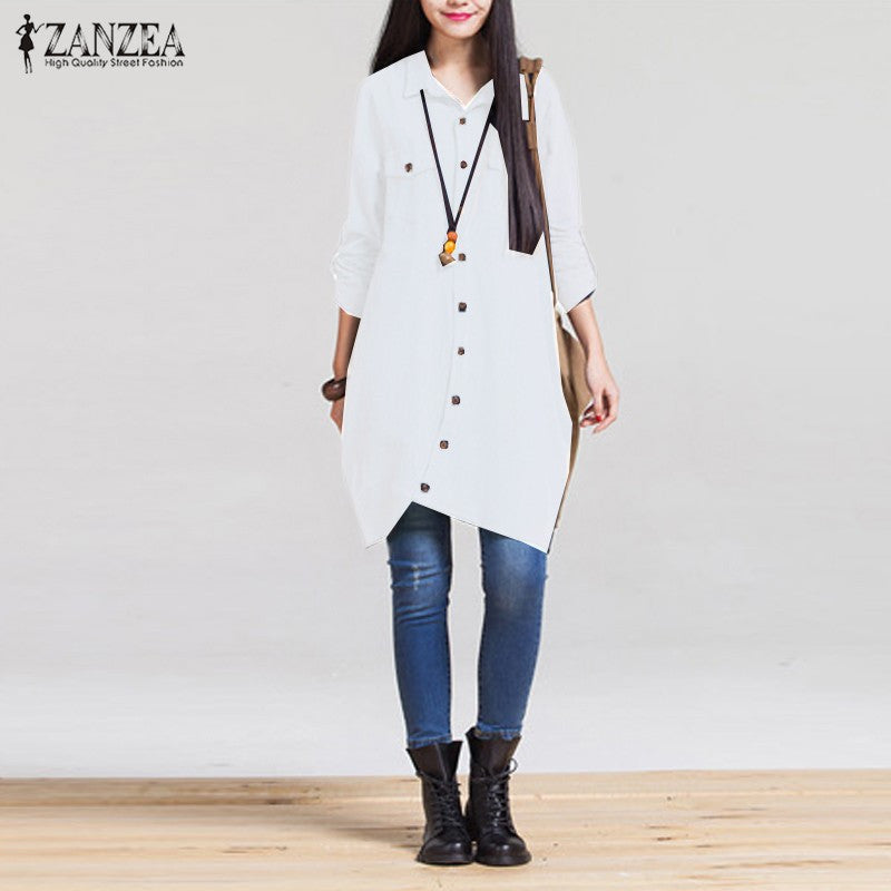 ZANZEA Fashion Women Blouses 2016 Autumn Long Sleeve Irregular Hem Cotton Shirts